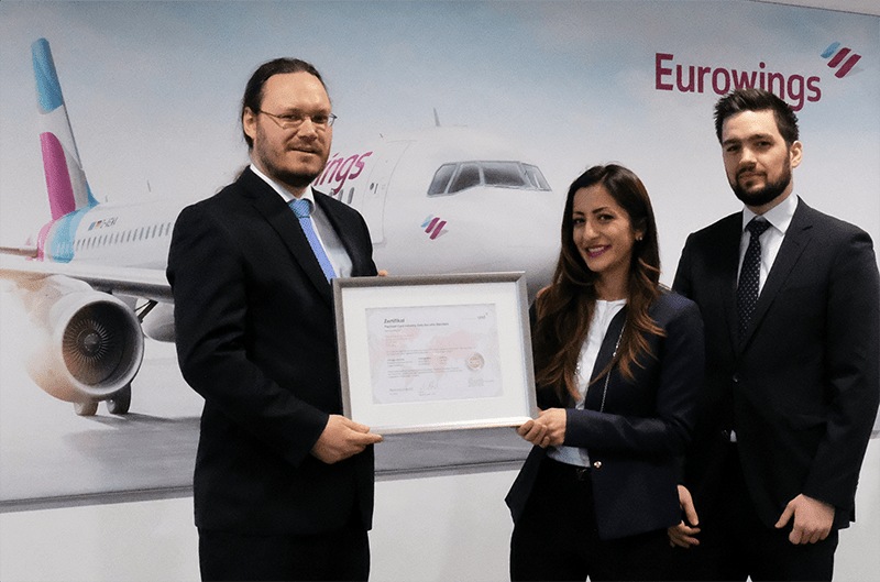 Left to right: Dr Kai Schubert, PCI DSS Lead Auditor usd AG, Ms Mehtap Secilmis, Head of IT Governance and Information Security Officer Eurowings Group, Lorenz Heiler, Security Consultant usd AG..