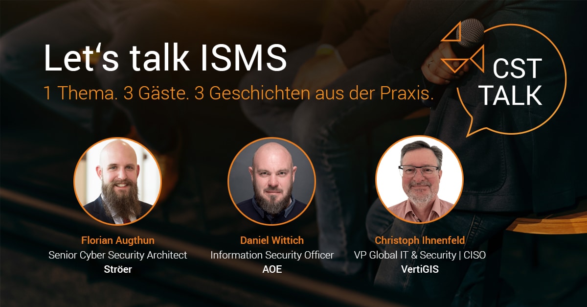 Mareike Clemens: Ich freue mich, dass wir zu unserem ersten CST Talk drei großartige Experten zu Gast haben. Alle drei haben kürzlich die Implementierung und Optimierung der Informationssicherheitsmanagementsysteme in ihren Unternehmen verantwortet. Klingt zusammengefasst in einem Satz so leicht, aber wir wissen alle: Das ist es definitiv nicht. Ich möchte daher von ihnen wissen, welche Herausforderungen sie beim Aufbau zu bewältigen hatten, wie es ihnen trotzdem gelungen ist und welche Tipps sie ihrem früheren Ich mit auf den Weg geben würden, wenn das möglich wäre. Natürlich gibt es noch viele weitere Fragen, bestimmt auch aus dem Publikum, die wir gemeinsam diskutieren wollen.